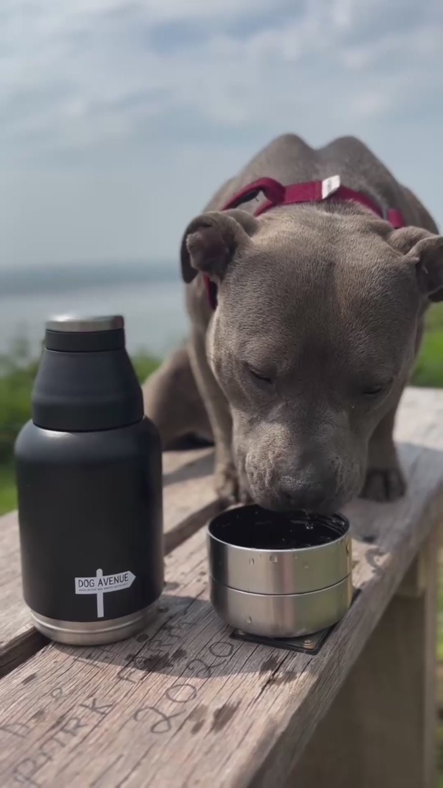 The bottle top can be used as a hooman cup too so you also have access to fresh water or a nice coffee on the go.